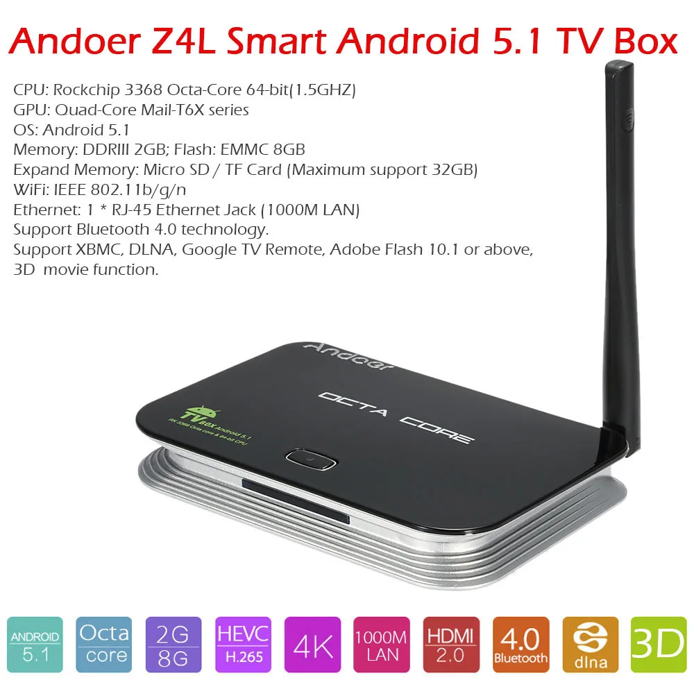 The A minimum of Expensive Andoer Z4L Android 5.1 TV Box RK3368 Octa-Core 64Bits 2G/8G XBMC DLNA 4K 3D H.265 WiFi 1000M LAN Bluetooth 4.0 HD Better than Z4. See our great selection and good shipping. Purchase on Andoer Z4L Android 5.1 TV Box RK3368 Octa-Core 64Bits 2G/8G XBMC DLNA 4K 3D H.265 WiFi 1000M LAN Bluetooth 4.0 HD Better than Z4 today. Best Price Warranty! Now! Deal!.